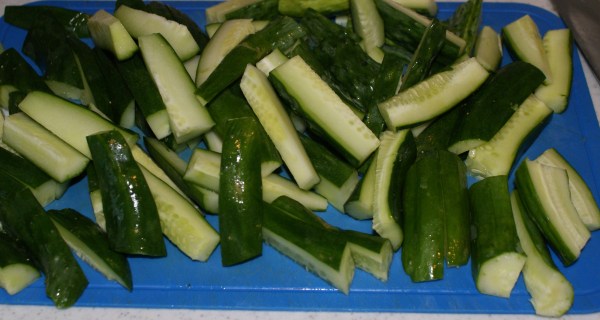 キュウリは大きめの短冊に切ります。