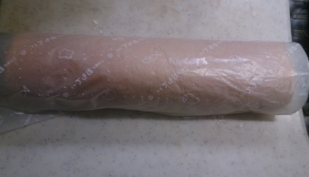 15.ラップでくるみ、巻き終わりを下にして冷蔵庫で1時間から半日寝かせます。