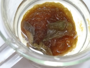 7.8分後のお湯のみ入れた果実の様子。さらに海藻ような果肉が出てきました。